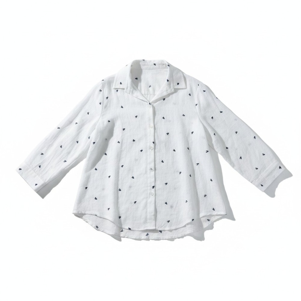 Αέρινο γυναικείο πουκάμισο με κομψό και διακριτικό σχέδιο. Το ελαφρύ ύφασμα και η άνετη γραμμή το κάνουν ιδανικό για καθημερινές εμφανίσεις, ενώ τα μικρά μοτίβα σε σχήμα καρδιάς προσθέτουν μια παιχνιδιάρικη και θηλυκή πινελιά.