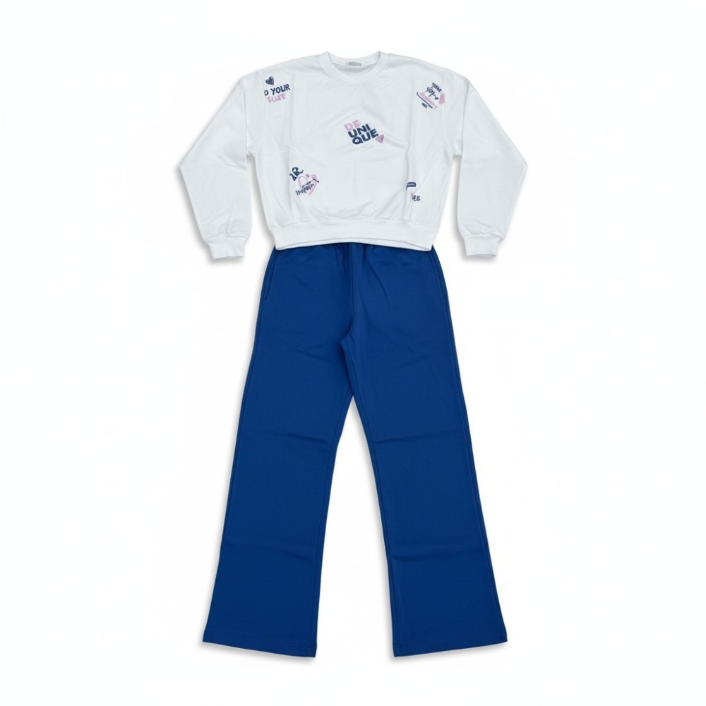 Μοντέρνο παιδικό σετ που αποτελείται από λεπτή μπλούζα και παντελόνα, ιδανικό για άνετες και στιλάτες καθημερινές εμφανίσεις. Η μπλούζα διαθέτει στρογγυλή λαιμόκοψη και μοντέρνες στάμπες με γραφικά που χαρίζουν παιχνιδιάρικο και νεανικό χαρακτήρα.
