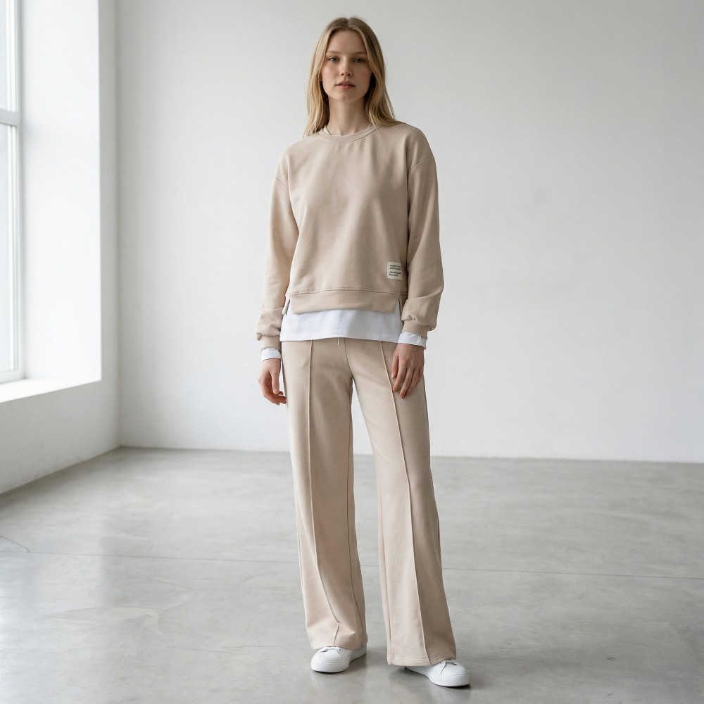 Μοντέρνο γυναικείο σετ φόρμας που αποτελείται από μπλούζα και παντελόνα σε άνετη γραμμή. Η μπλούζα διαθέτει ιδιαίτερο διπλό εφέ με εσωτερική λεπτομέρεια που θυμίζει πουκάμισο, χαρίζοντας πιο stylish χαρακτήρα στο σύνολο.