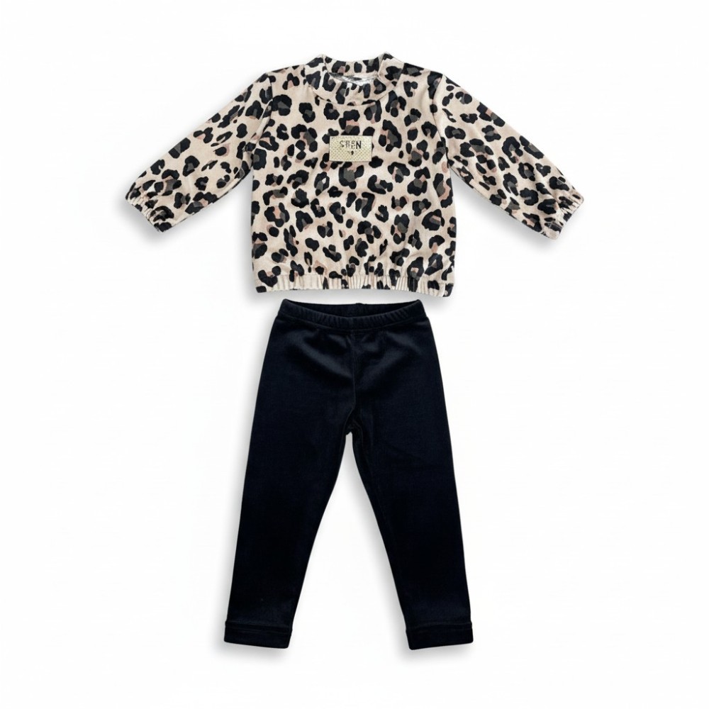 Μοντέρνο και ιδιαίτερο νηπιακό σετ της Serafino που ξεχωρίζει για το εντυπωσιακό animal print σχέδιο. Η μπλούζα διαθέτει leopard μοτίβο με διακοσμητικό patch στο μπροστινό μέρος και λάστιχο στο κάτω μέρος για πιο μοντέρνα εφαρμογή.