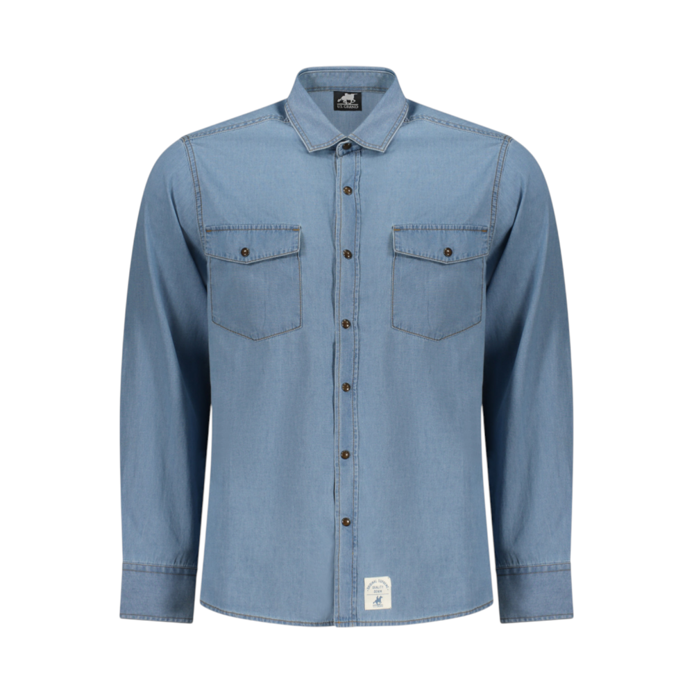 Ανδρικό denim πουκάμισο U.S. Grand Polo σε γαλάζιο χρώμα, κατασκευασμένο από ελαφρύ τζιν ύφασμα για άνεση και στυλ. Διαθέτει κλασικό γιακά, κουμπιά σε όλο το μήκος και δύο τσέπες στο στήθος που προσθέτουν χαρακτήρα στο σχέδιο.